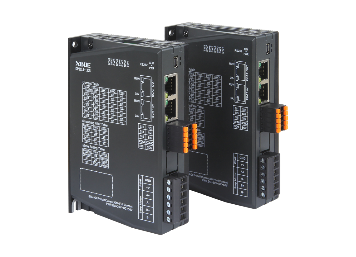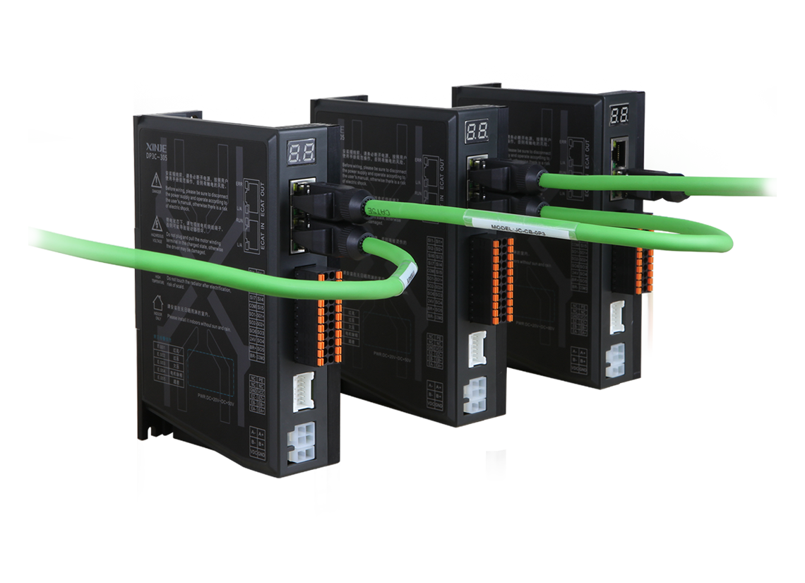 DP3CL serisi açık döngülü veri yolu tipi step sürücü, CiA402 standardına uygundur ve 32 ekseni destekler. Ana ve yardımcı istasyonlar arasındaki iletişim döngüsü 32 eksen için 1 ms'ye ulaşabilir. Yeni bir kontrol algoritması ve mükemmel performansla, elektronik, lazer ve tel sıyırıcılar, işaretleme makineleri, çizim makineleri vb. gibi çok eksenli kontrol gerektiren cihazlarda kullanılabilir.