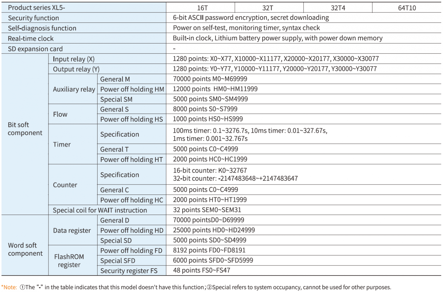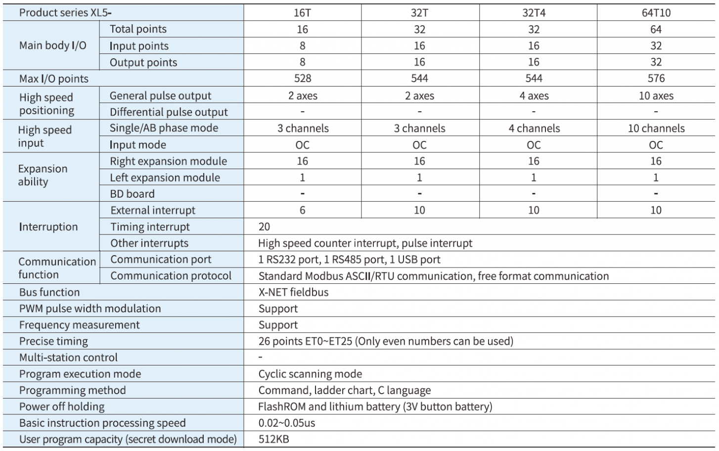 Standart PLC'nin tüm işlevlerine ek olarak, daha hızlı işlem hızına (XC serisinin yaklaşık 15 katı), daha büyük dahili kaynak alanına, 2~4 kanal yüksek hızlı darbe çıkışına, sağ genişletme modülü ve sol genişletme ED modülünün bağlantısını destekler ve çeşitli kullanım gereksinimlerini karşılayabilir.