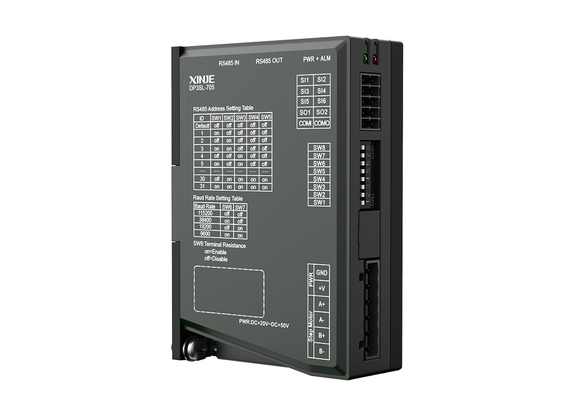 DP3SL serisi açık çevrim RS485 step sürücü, dijital sürücüye RS485 iletişimi ve tek eksen kontrol fonksiyonları ekler. Modbus RTU veri yolu protokolüne dayanarak, step sisteminin gerçek zamanlı kontrolünü ve veri iletimini gerçekleştirir. 485 iletişim hattı, geleneksel pals yön sinyal hattının yerini alır, bu da basit kablolama ve maliyet tasarrufu sağlar.
